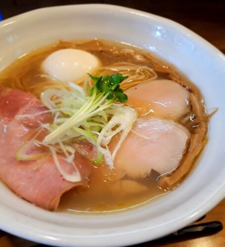 以前、知人に教えられて出かけた三鷹駅北口にある「ラーメン 健やか」。煮干しラーメンがとても美味しくて感動したのだが、先日近くまで行く用事があったので今度は塩ラーメンを食べてきた。 ストレート麺と穂先メンマ、豚チャーシューと鶏チャーシューに味…