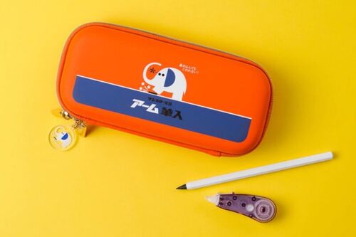 「象が踏んでも壊れない」で一世を風靡したアーム筆入れ。1965年(昭和40年)に発売され2年後の1967年からコマーシャルが放映されたが、非常にインパクトの強いコマーシャルだった。当時はまだまだ道具の強度が弱くて、プラスチックもすぐに割れていた時代…
