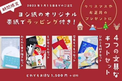 コクヨ工業滋賀が運営する通販・情報サイト「となりのひきだし」では、期間限定のギフトセット「帯紙のラッピング付き『4つの文具なギフトセット」を発売している。期間は2023年1月15日までで、価格はそれぞれ1,500円(税込)プラス送料となっている。