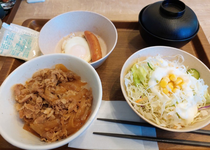 「松屋」も時々食べに行くお店で、安くて早くて美味しいという会社員の味方のお店で、先日も写真のような「牛めしランチ+半熟目玉焼き&ソーセージ」をいただいた。