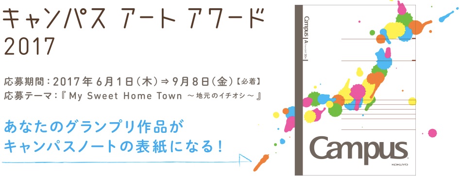 文具とファニチャーの総合メーカーコクヨでは、毎年キャンパス アート アワード を開催している。これは中高生を対象としたコンクールで、「My Sweet Home Town~地元のイチオシ~」をテーマに地元の魅力を描くる絵画コンテストだ。