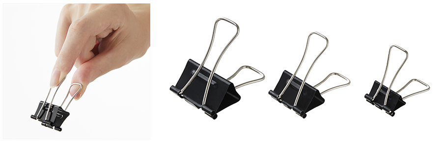 タブルクリップは「てこの原理」を利用したクリップで、折りたためるレバーをつまむことで書類を挟み、挟んだらレバーを戻すことによって邪魔にならないという優れものだ。1915年にアメリカで開発されたダブルクリップは、形状がほぼ開発当時のままで使われているという世界的なロングセラー商品となっている。