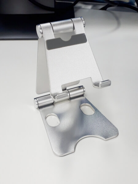 重さは120gと軽量なのだが、この重さが適度で安定している。角度を2箇所で変えることができるので、好みの高さや角度でスマホやタブレットを置くことができる。また、アーム部分と支える部分の滑り止めのホールド感が良いのでスマホなどがずれることがなくしっかりと止まっている。