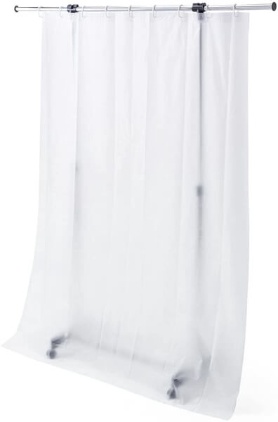 この商品は簡易なパーテーションで、部屋の中を仕切ったり飛沫防止用のカーテンとして使うことができる一方で、リモート会議の時の背景としても使うことができる。