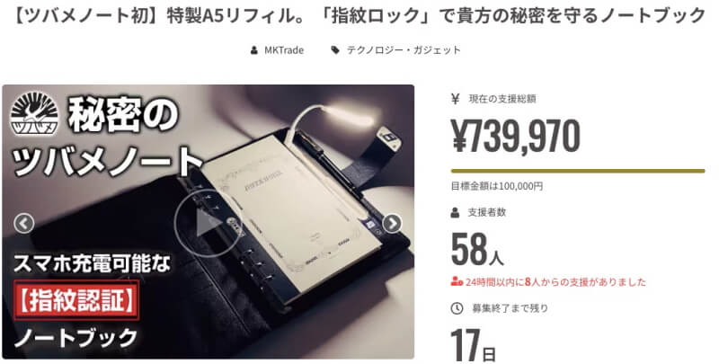 スマホやパソコンなどは、指紋などの生体認証でロックがかけられるようになった。完全なロックとは言いにくいが、むやみやたらと中身を覗かれてしまう恐れがなくて安心だ。デジタルデバイスはそういった安心なシステムがあるが、それをアナログのノートに応用した商品をツバメノートがクラウドファンディングで支援を募集している。