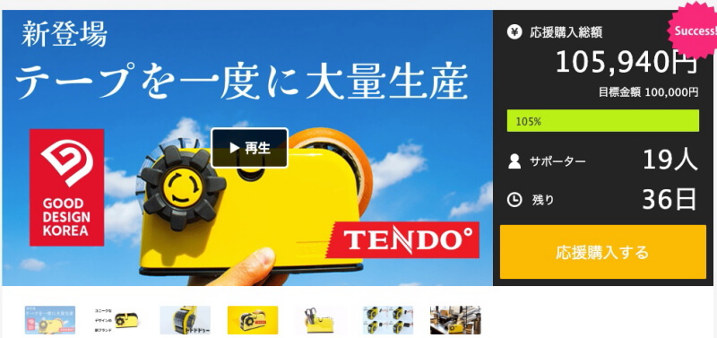 クラウドファインディングサイトで支援を募集しているのが、梱包用テープを有効活用するというユニークな商品「TENDO°多分割テープディスペンサー」だ。まだ募集を始めたばかりだが、すでに20人近くが支援をエントリーしている。