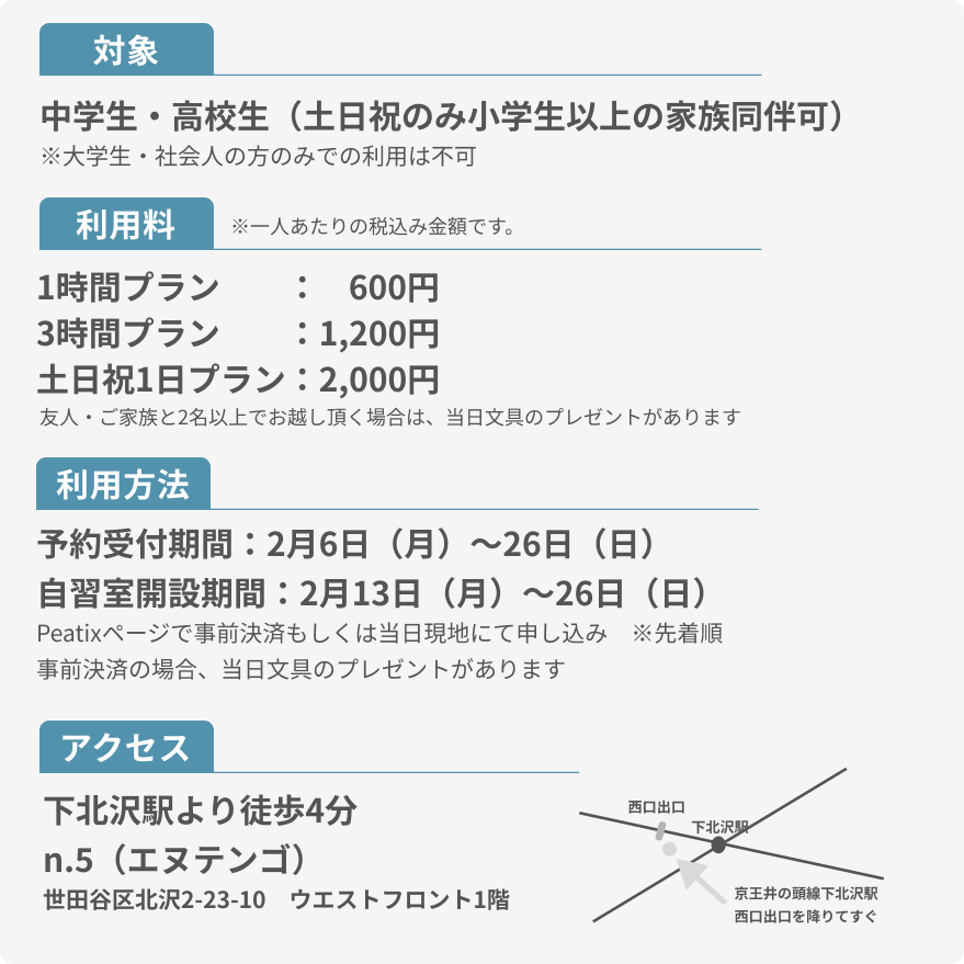 受験シーズンも真っ只中で、受験生の皆さんは日々学校だけではなく自宅や図書館や塾などで最後の追込みに入っていることだろう。また、受験生ではなくても期末試験などのために日々勉学に励んでいる中高生の皆さんも多いのではないだろうか。コクヨはそんな中高生を支援する自習室を、東京・下北沢で期間限定でオープンしている。