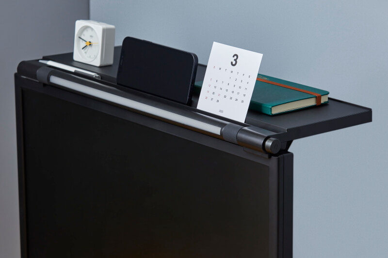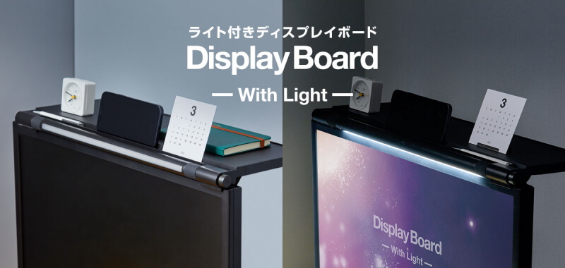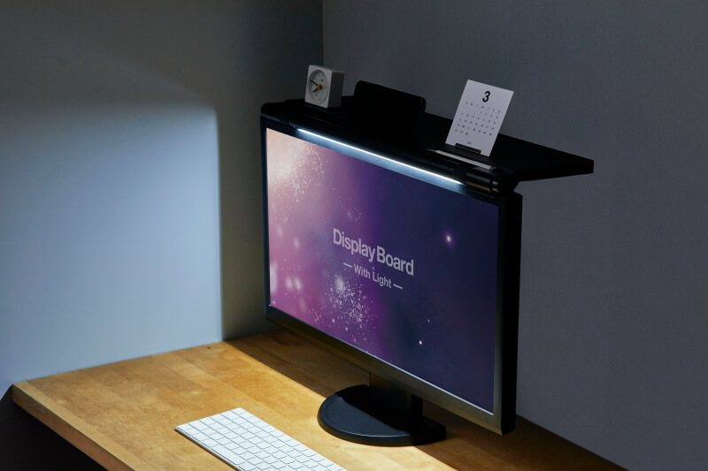 「ディスプレイボード」は液晶ディスプレイの上に取り付ける小物置で、2016年3月に発売されてから累計で10万台以上の販売台数を誇るヒット商品だ。本体を液晶ディスプレイのフチに引っかけ、付属のアーム支えるだけの手軽さが受けているようだ。今回発売される「ライト付きディスプレイボード」は2wayライトと小物置きが一体化したタイプで、手元と正面を明るく照らしてくれる。