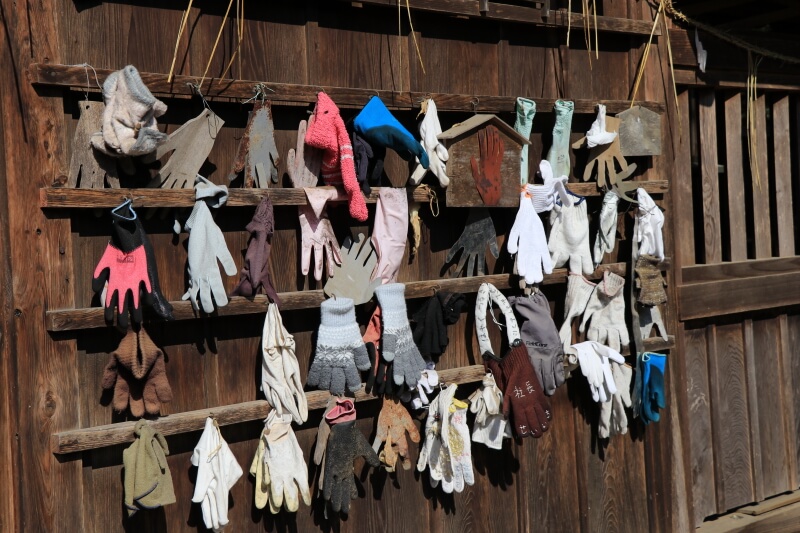 そのため、神社の右側には絵馬がわりに手袋が奉納されていて、こうすることで手の病が治るのだという。神社の成り立ちといいお参りの方法といい、地元の伝説に基づいた神社というのは珍しいしその土地ならではで素晴らしいなと思う。