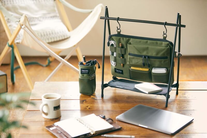 キャンプ道具のようなワークツールを使えば、仕事も今までよりも少しは楽しくなりそうですし、在宅勤務の時には必要なものを手元に置いておけるので便利そう。発売されたら実際に手に取ってみたいなと思わされる商品です。