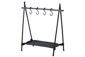 「ハンギングラック」はコンパクトに持ち運びができ、ワークツールを吊るして整理できる商品。ポールにはショックコードが内蔵されていて、コードに従って動かすことで簡単に組み立て可能です。キャプ用のテントポールと同じ構造ですね。