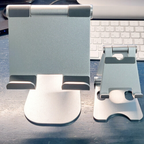 私が自宅で使っているのが、iPadを置くことのできる「タブレット スタンドLomicall stand」とスマホ用の「Wsky.スマホ スタンド 」の二つだ。スマホスタンドは現在販売されていないようだが、同様の商品は数多く出ているのでどれを使ってもさほど違いはないだろう。軽量コンパクトなのでビジネスバッグの中に一つ入れているほか、職場のデスクにも自宅のデスクにも一つずつ置いて便利に使っている。