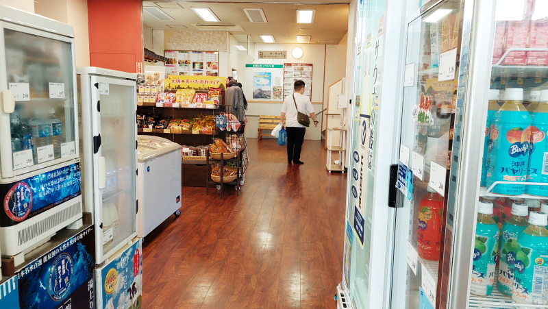 フロント横には売店があるが、お土産というよりは日用雑貨的なものやお菓子、飲料が置いてあって一日ゆっくりと過ごすための商品なのだなと感じた。