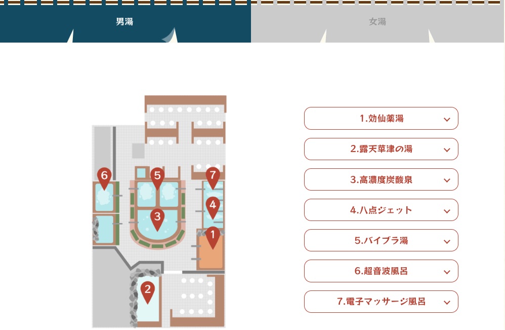 浴室は撮影できないんのでホームページで確認していただきたいが、ご覧のように豊富な種類が揃っていてのんびりと入ることができる。また、サウナは若干小さめではあるが、時々サウナストーンに柄杓などで水をかけて湯気や蒸気を立ち昇らせる「ロウリュウ」が行われて、とても良い感じの汗をかくことができる。