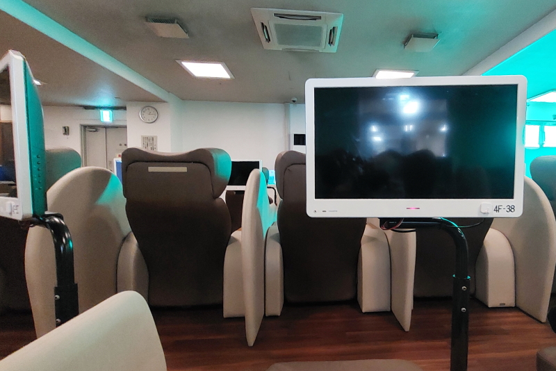 休憩室にはテレビ付きのリクライニングシートが用意されているので、入浴後はゆっくりと休んだり仮眠を取ったりすることができる。また、5階にはゴロリと横になれる仮眠スペースがあり、また2階には56,000冊という膨大な札数のコミックコーナーがあるので、漫画好きも楽しく過ごせるのではないだろうか。一日のんびりと過ごすことのできる施設だなと感じた。