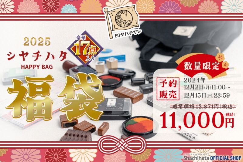 スタンプ印でお馴染みのシヤチハタは、本日12月2日(月)午前11時から「2025シヤチハタ福袋」の予約受付を開始します。シヤチハタ製品17品目、13,871円相当が入った福袋が11,000円とお得な価格設定になっています。