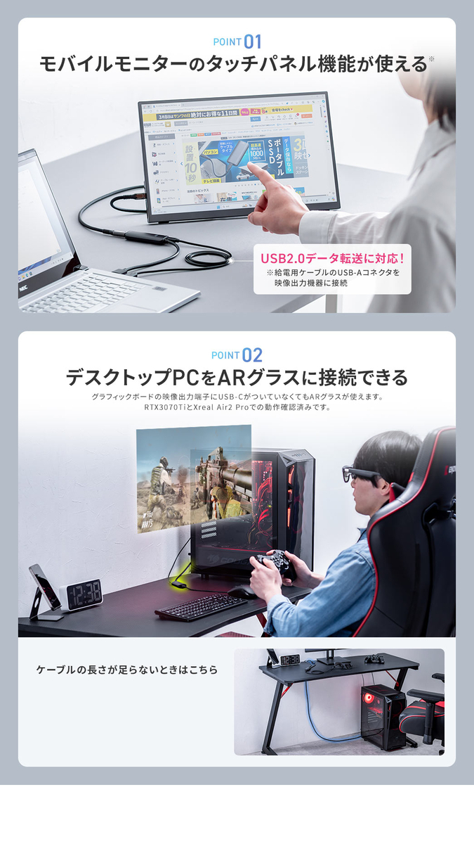 最近のタブレットPCやモバイルモニターなどは入出力として「USBーC」が標準になっていて、今までのケーブルでは接続できないことがある。そんな時に「ちょっと役立つ」変換アダプタが発売されている。
