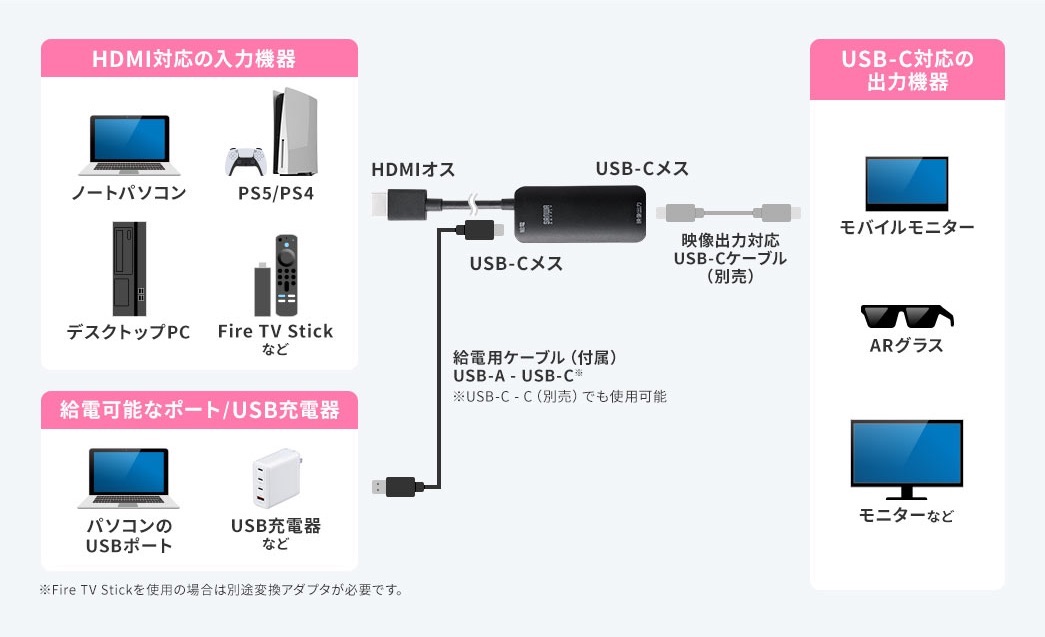 サンワサプライが発売しているのが、「HDMI to USB-C 変換アダプタ」という商品。HDMIからType-C に変換する商品だ。 パソコンのHDMIポートから、USBC 接続のモバイルモニターなどに映像出力することができる。