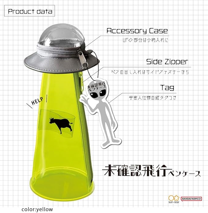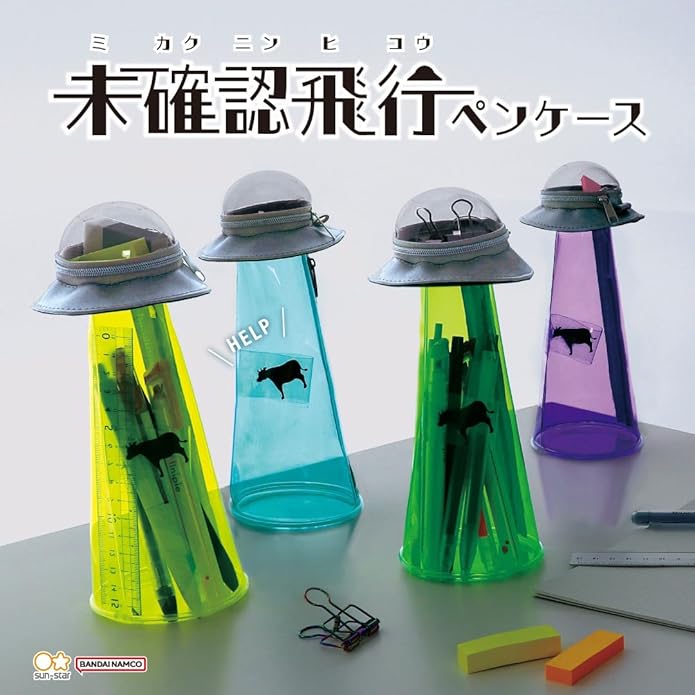 文具店で見かけて思わず手に取ってしまったのが、サンスター文具の「未確認飛行ペンケース」という商品。カラーはイエロー、グリーン、バイオレット、ブルーの4色だ。