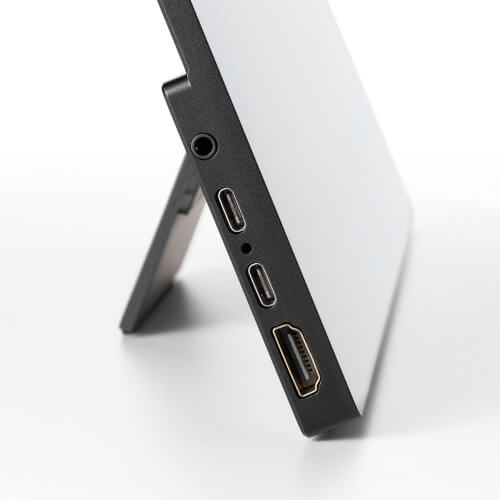 入力端子は「USB Type-C(DisplayPort Alt Mode)×2」、「HDMI×1(フルHD)」、「USB Aコネクタ×1(USB2.0)」と豊富で、出力端子の「3.5mmステレオミニジャック×1」を備えているので、普通に使うには不便を感じないだろう。